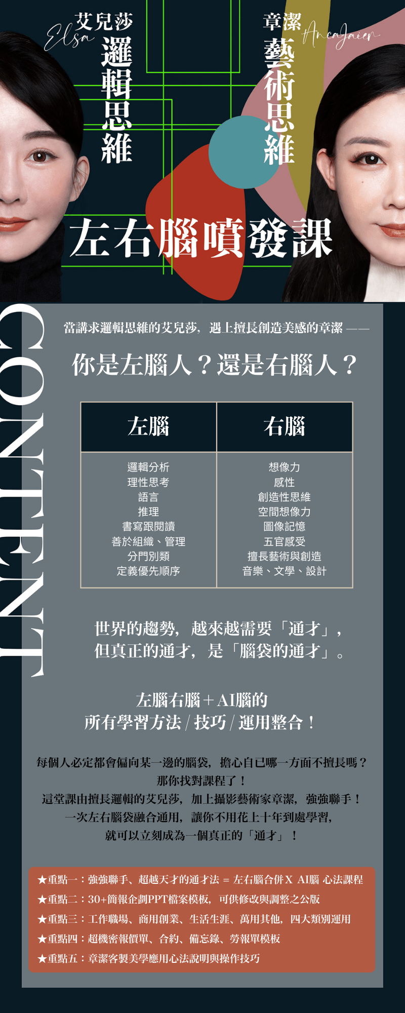 ★重點一:強強聯手、超越天才的通才法 = 左右腦合併X AI腦 心法課程
